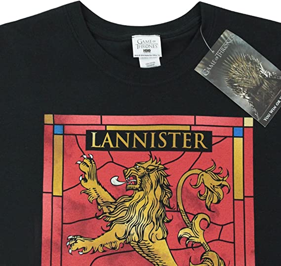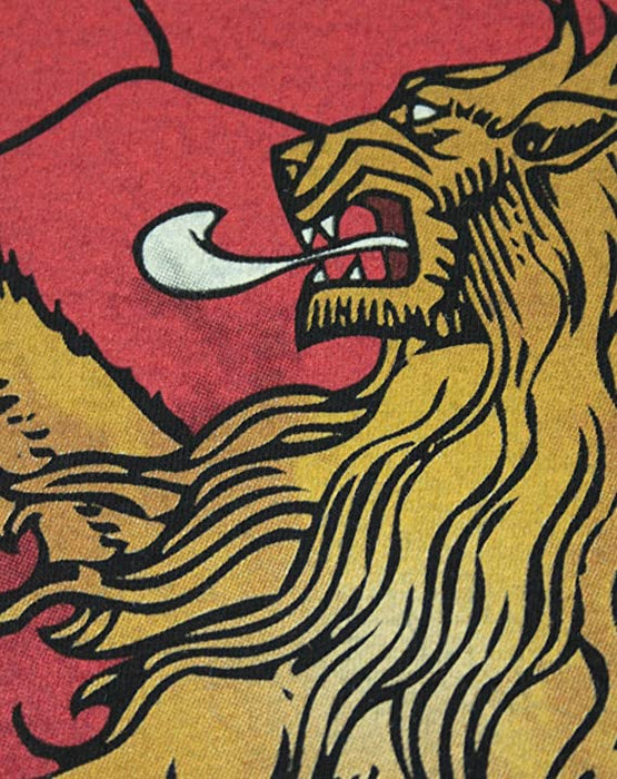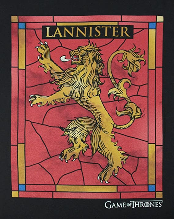The distinctive print across the front of the t-shirt sees the well recognised Lannister golden lion, the detailed design is set against a stain glass window effect, ‘Lannister’ is in golden text across the top, and the Game of Thrones logo can be seen printed along the bottom.