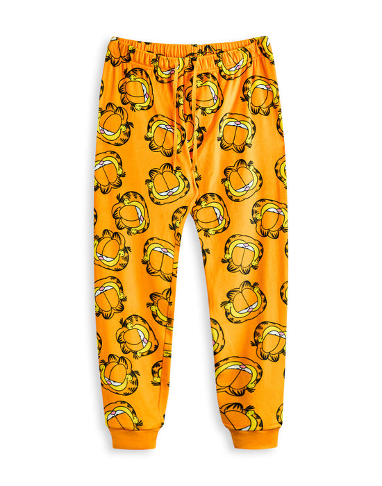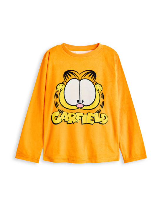 Featuring a long sleeve top adorned with a cheeky Garfield graphic and matching long leg pj bottoms in Garfields iconic orange, this set is as cosy as it is fun. The all-over print nightwear gives a playful nod to everyones favourite lasagna-loving feline, making it a perfect choice for fans who appreciate a good nap (or two... or three).