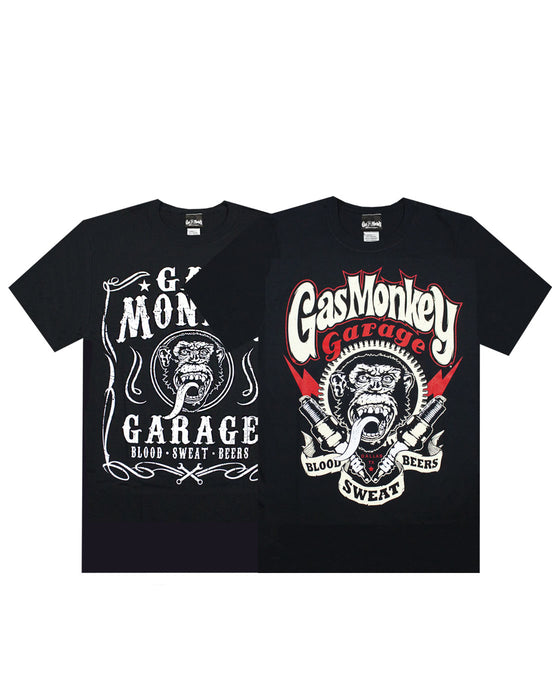 Gas Monkey Fast N' Loud Blood Sweat Beers Sparkplugs Logo Men's T-Shirt 2pk Bundle