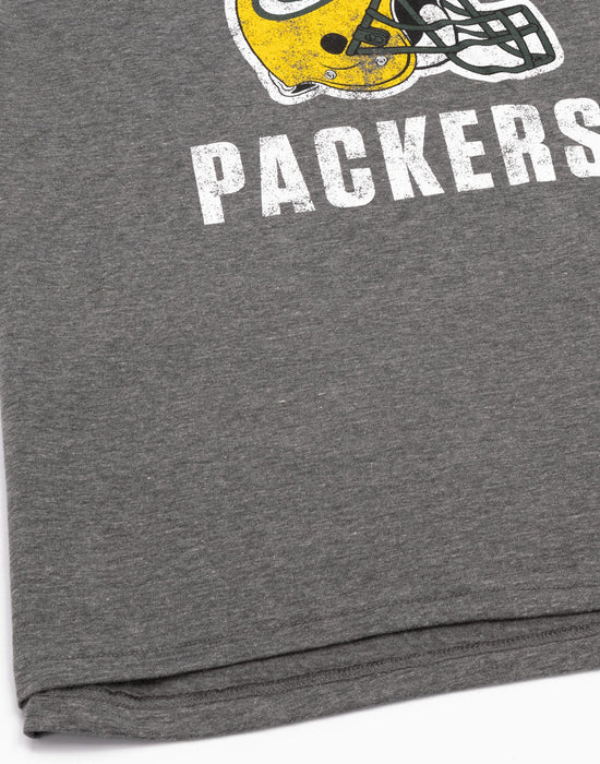Officially licensed and exclusive to Vanilla Underground, the charcoal grey t-shirt features a yellow Packers helmet print as seen and worn by the team, making the perfect outfit for the Super Bowl and game nights.
