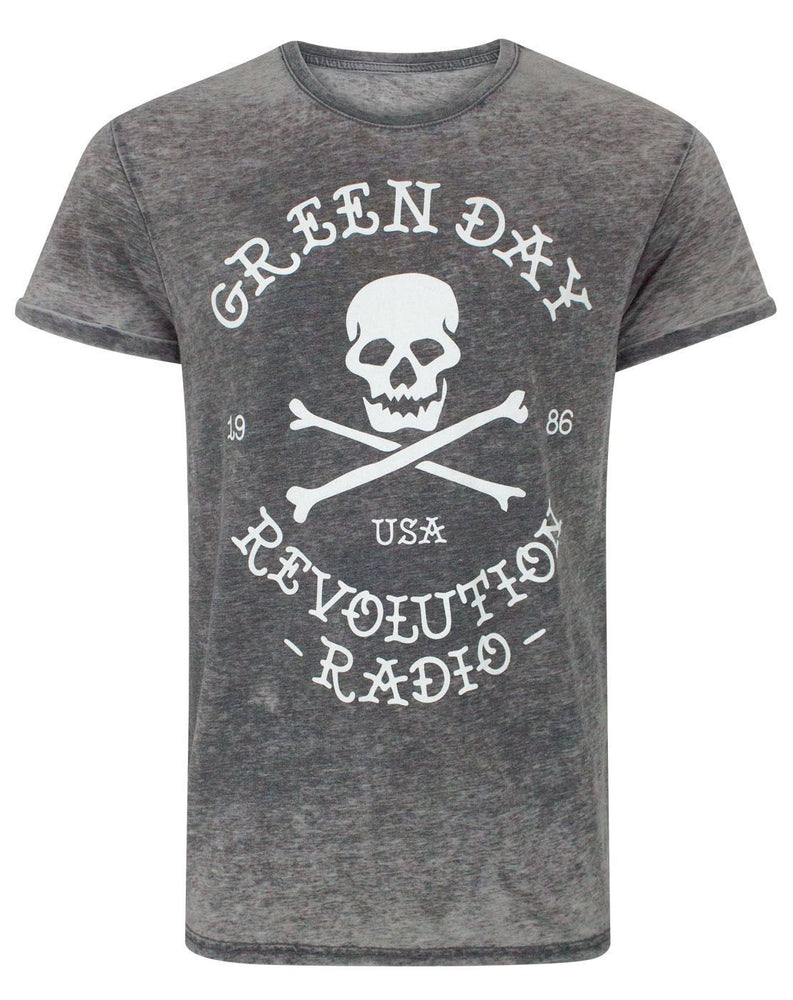 Green Day Revolution Radio Skull Cross Bones Men's Burn Out T-Shirt
