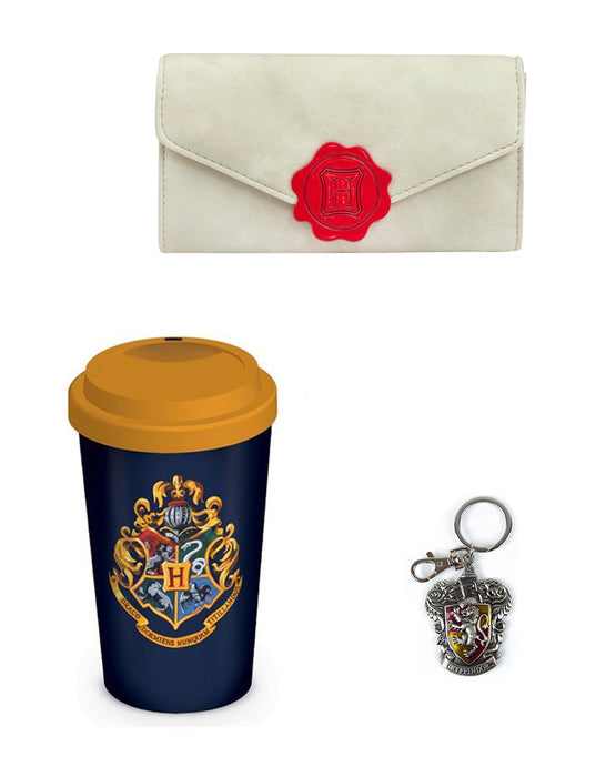 - Bundle contains 1x Hary Potter Letter Purse, 1x Hogwarts Travel Mug, 1x Gryffindor Crest Keyring