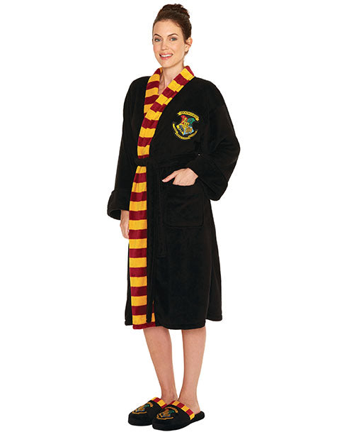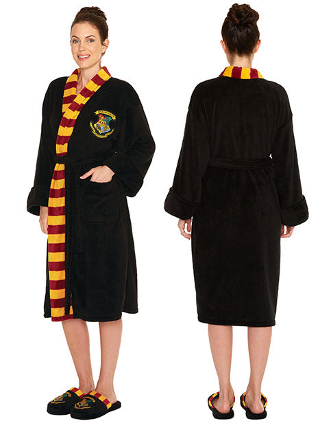 Consider this bathrobe your letter to Hogwarts, because as soon as you put it on you'll feel like you're there! Join the wizarding world of Harry Potter as you don this unbelievably cosy robe which is emblazoned with the instantly recognisable Hogwarts School Crest. Featuring front pockets to easily store your wand and potions, this robe is sure to make you the envy of your fellow witches and wizards. Other features include a hood and a tie-able belt so you can fine-tune just how snug you want to be. Made from 100% polyester, you can guarantee that this officially licensed robe will be both soft and durable.