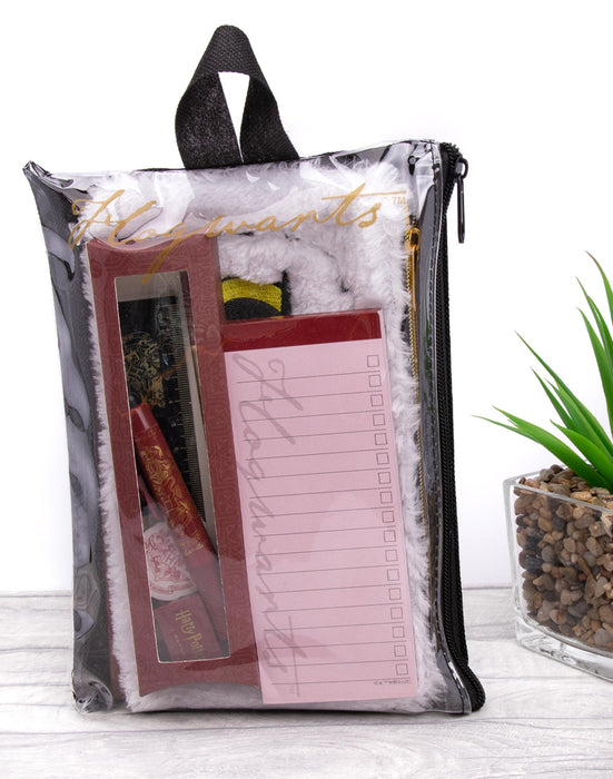 This magical Harry Potter gift set comes in a bag that includes a Hogwarts writing book, fluffy Hedwig pencil case, notepad, pencils, sharpener, eraser and ruler. The stylish burgundy and gold A5 writing book comes with lined paper paired perfectly with a pen and pencil ideal for taking notes. The Harry Potter notebook features the Hogwarts School Of Wizardry and Witches school logo with a note reading ‘property of Hogwarts’ making you feel like a real-life wizard. The soft white Hedwig pencil case is the perfect size to fit all your writing and drawing essentials inside.