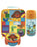 - Lunch Bag: polyester and PVC front panel, Snack Pot: Polypropylene plastic, Bottle: Polypropylene plastic with silicon straw