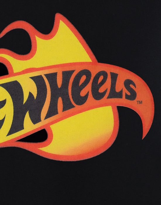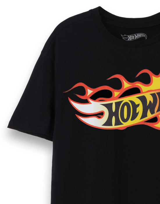 Rev up your style with the Hot Wheels Flames Men's Black Short-Sleeved T-Shirt!