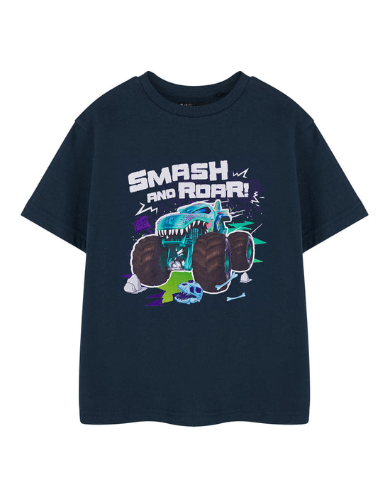 Hot Wheels Smash And Roar Boys Blue Short Sleeved T-Shirt