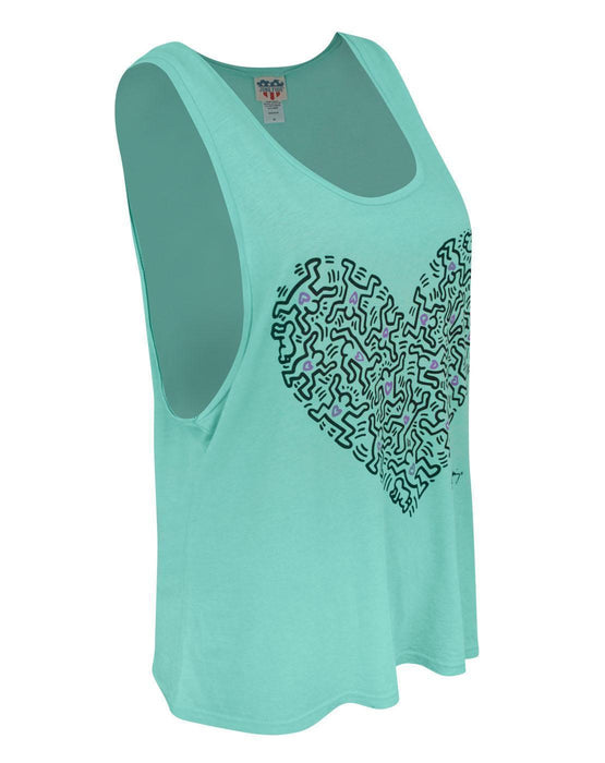 Fresh from the USA, this Junk Food Keith Haring People Heart womens vest is an awesome addition to any girls wardrobe! This top offers a fun fashionable feel, with the distinctive style of Harings artwork making it a stand-out piece. The printed design showcases “People Heart,” one of Harings pieces that features interlocking people combining to make a heart shape in a standout pop art style.