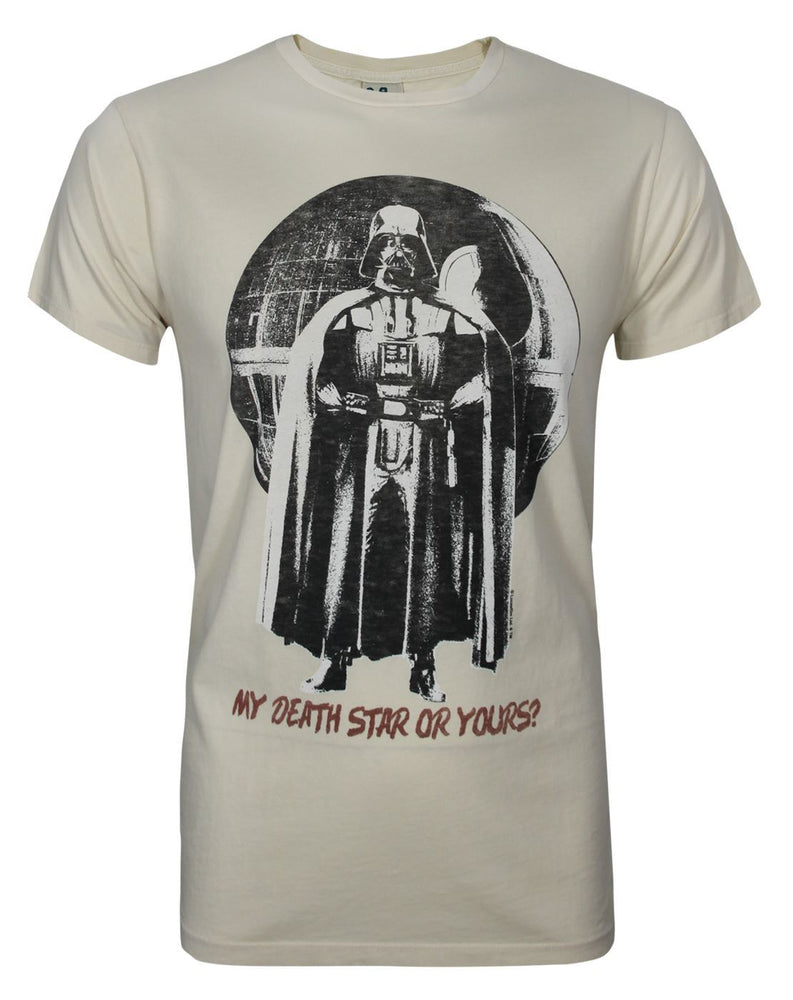 Made in the USA this Junk Food Star Wars My Death Star Or Yours mens t-shirt is a cool and fun take on the classic Star Wars t-shirt. Part of the Star Wars range this mens 100% cotton t-shirt offers a faded distress effect giving it a vintage inspired feel. Printed for a no feel feel on a off white egg colour t-shirt this Star Wars t-shirt offers a relaxed fit and machine washes at 30c.
