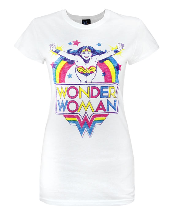 Fresh from the USA this Junk Food Wonder Woman Logo womens t-shirt is a super cool addition to any girls wardrobe. This ladies superhero t-shirt is made from 100% cotton and features an iconic Wonder woman print in bold retro style. The slim fit style gives this ladies t-shirt a stylish edge along with a classic crew neck, short sleeves and vintage wash finish. The bright Wonder Woman print is showcased in a striking and vintage inspired design; printed for a ‘no feel feel this white womens t-shirt washes comfortably at 30c offering both style and comfort.