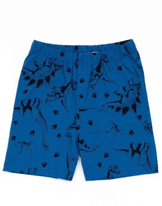 This amazing set features a vibrant blue t-shirt and matching shorts adorned with iconic dinosaur designs.