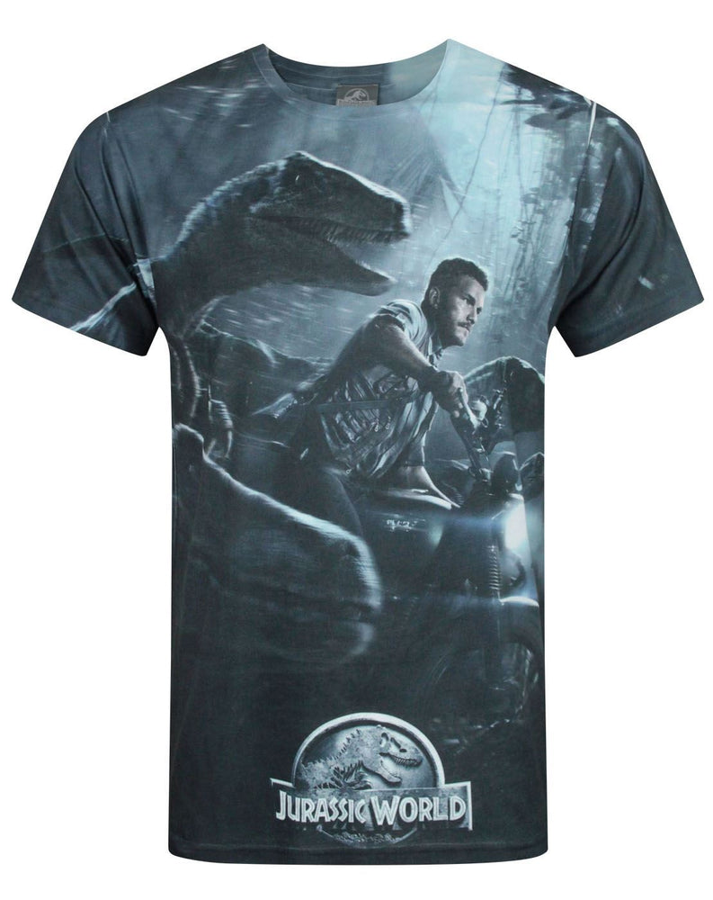 The park is now open, get your hands on this officially licensed Jurassic World Raptors mens sublimation t-shirt and celebrate Jurassic World in style. This sublimation t-shirt features an all over print that showcases an awesome scene from the movie with main star Chris Pratt riding alongside the formidable raptors. From time to time, you may see white marks under the arms and along the seams. This is where the t-shirt fabric bunches up slightly during the application process. However we have developed a garment that dramatically reduces these imperfections. Although the image we provide is just an example of 1 individually printed t-shirt, it is an accurate representation of the quality garment we provide.