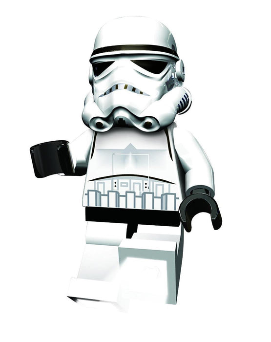 Add a little Lego themed fun to your day with this awesome official Lego Star Wars Stormtrooper torch! Taken from the much loved Lego Star Wars this torch showcases a foot soldier of the Galactic Empire, the Stormtrooper is seen here with his iconic crisp white uniform and helmet. This Stormtrooper torch is packed with quality detail and design, a torch like no other this 3D shaped Stormtrooper is made from light weight plastic and offers a practical as well as fun use; this torch can stand alone on two feet or one with little support. This torch has two LED lights that sit in the bottom of the Stormtrooper's feet these lights can be activated by holding down the chest. Offering a bright light these LED's mean this torch can be used practically and recreationally; great for keeping in the car as emergency or for reading your comics under the covers at night! In true Lego style this Star War Stormtrooper torch have moveable parts and is made for the best quality, this torch measures approximately 20cm. This Lego Star Wars Stormtrooper torch requires three AA 1.5V batteries, which are not included.