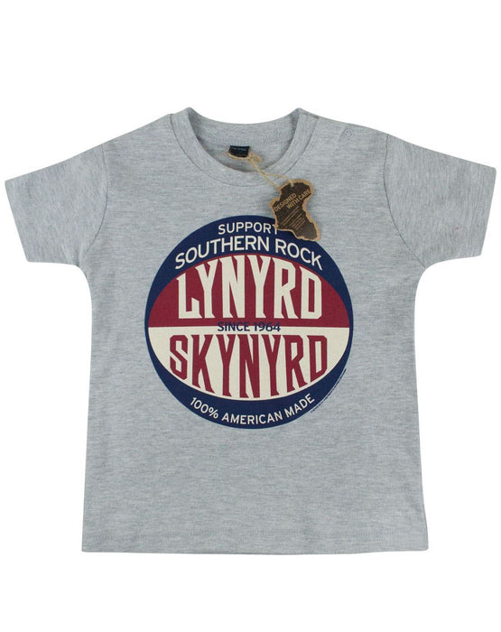 Perfect for little rockers this Lynyrd Skynyrd B-Ball logo t-shirt for toddlers is a cool addition to any little ones wardrobe! The print across the front of the t-shirt showcases the baseball logo design in red, blue and cream set against the grey marl of the t-shirt. Made from 93% cotton, 7% polyester this kids t-shirt has a soft feel making it a comfortable fit. This t-shirt has two poppers at the shoulder for an easy way to get it off and on little ones! With crew neck and short sleeves this Lynyrd Skynyrd t-shirt is officially licensed, please follow all care label instructions carefully.