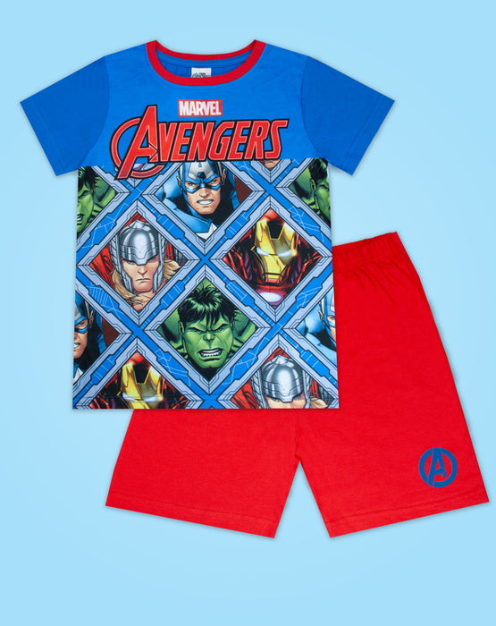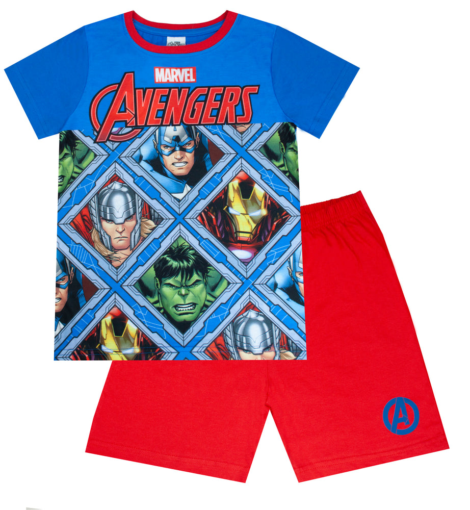 Bring some Avengers action to bedtime with these awesome Marvel Avengers Panels Blue Red Boy's Short Pyjamas! Officially licensed these Avengers Pyjamas offer a high quality feel and finish, perfect for keeping little ones comfy at night. This boys pyjamas set come with a short sleeve top and short bottoms packed vivid colour and attention to detail. The print showcases a cool design that sees some of the Avengers members in full armour, set beneath the well recognised Avengers Logo. The matching bottoms come in a contrasting red colour and sees a smaller print design on the bottoms of the leg again showcasing the Avengers 'A' logo. All our products are 100% official and come with official branding through-out. Please contact one of the VU team for any more help with sizing. Please follow care label instructions carefully.