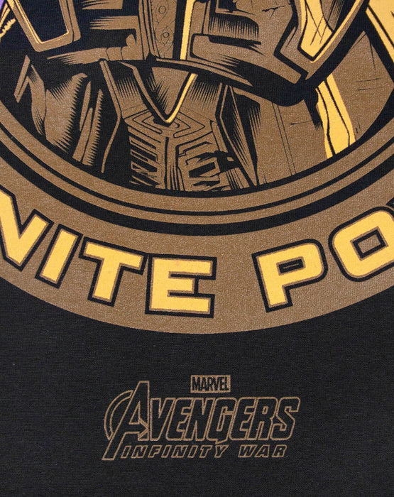 Get hyped and prepare for Thanos’ arrival in style with this awesome Marvel Avengers Infinity War men's t-shirt! This tee is the perfect way to celebrate the release of Avengers: Infinity War, the culmination of 10 Years of the Marvel Cinematic Universe. The large print across the front of the t-shirt comes in vivid colour, and features a detailed illustration of Thanos' iconic Infinity Gauntlet, complete with all 6 Infinity Stones. The illustration is encapsulated within a circular shape, including the slogan “Infinite Power” and underlined by the Avengers: Infinity War Logo. Made from 100% cotton, this men’s black t-shirt offers a crew neck and short sleeve style, and comes with official Marvel branding throughout. To ensure you get the most from this t-shirt, please follow all care label instructions carefully.
