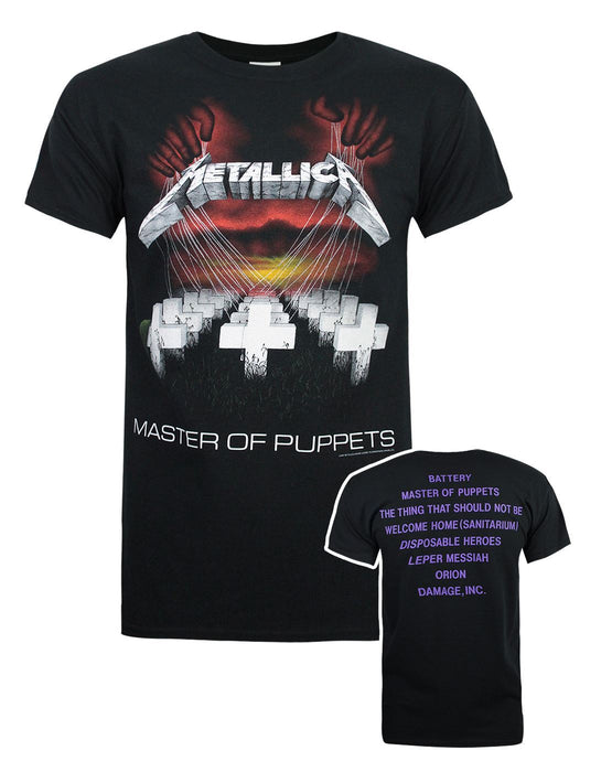This official Metallica Master of Puppets mens t-shirt is a must-have addition to any metal music fans t-shirt collection. The classic Master of Puppets print is shown in a rock n roll inspired print across the front of the t-shirt alongside the Metallica Master of Puppets lyrics printed across the back adding a high quality feel. Made with 100% cotton this fitted mens t-shirt is machine washable at 30c.
