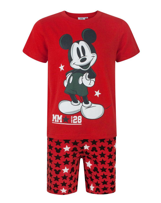 Make bedtime more fun! These official Mickey Mouse 1928 pyjamas for boys are packed with super fun details perfect for any Disney fan. This pyjamas set comes with a t-shirt and shorts bottom combination, made for a comfy fit and feel these pyjamas are made with soft style feeling. The t-shirt sees the iconic Mickey Mouse character in a classic black and white look along with the text ‘reading MM 1928 in a cool sporting retro look. This pyjama top comes in bright red and offers a crew neck and short sleeves detail; the matching shorts come in matching red with a cool patterned stars and mickey face design, they offer an elasticated waist for comfort. Please follow all care label instructions carefully and ask for additional sizing information if needed.