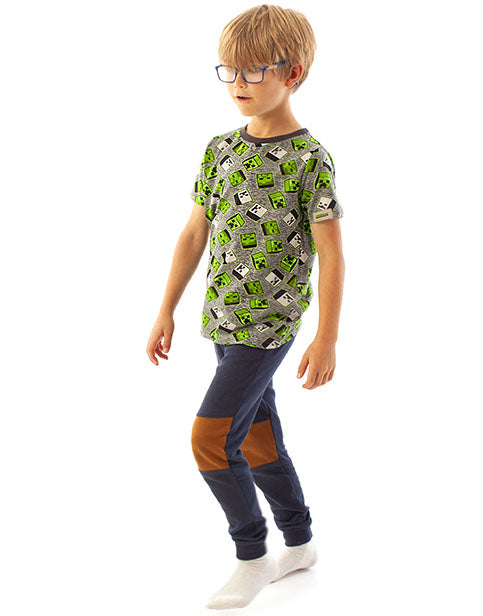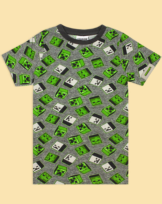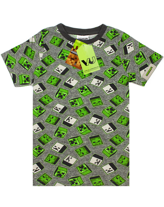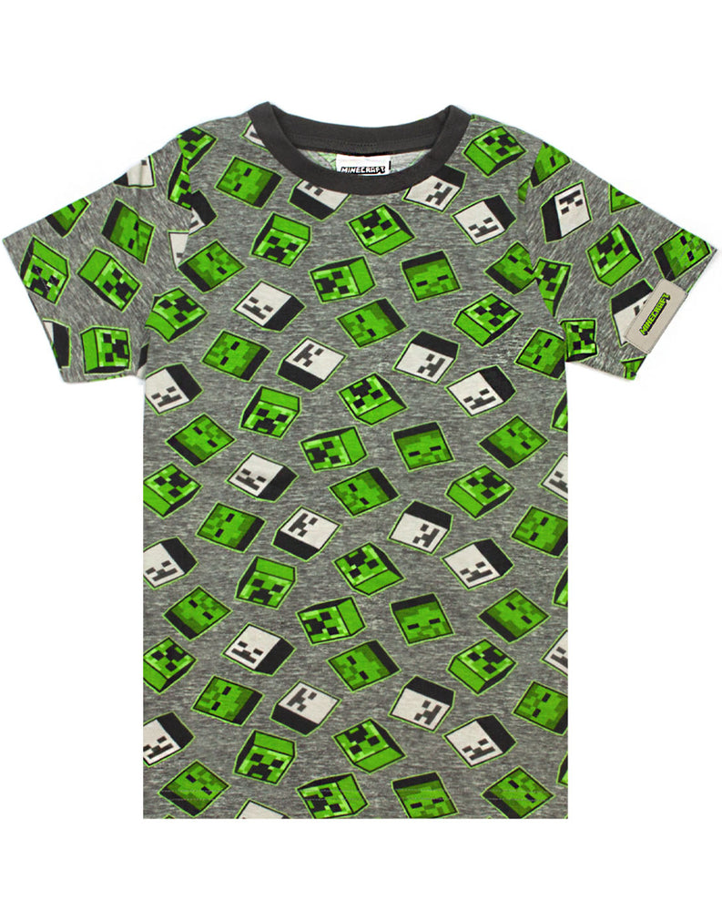 Minecraft All Over Print Creeper Zombies Boy's T-Shirt - Grey