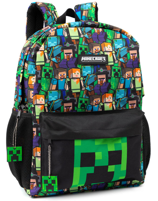 - Minecraft Kids Backpack - Our green Minecraft bag for boys & girls is perfect for any child that plays the epic video game. This premium quality backpack has an all over character design as seen in the Minecraft games with the fan favourite villains; Creeper, Zombie, Skeleton, Enderman and Cave Spider!