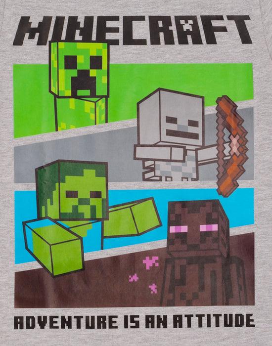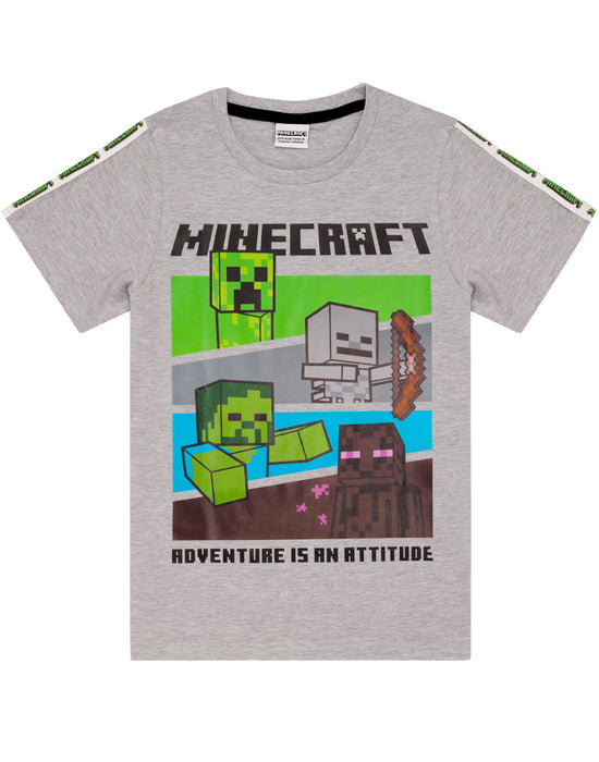Minecraft Boys Pyjamas Set Top And Shorts Kids Gamer - Grey