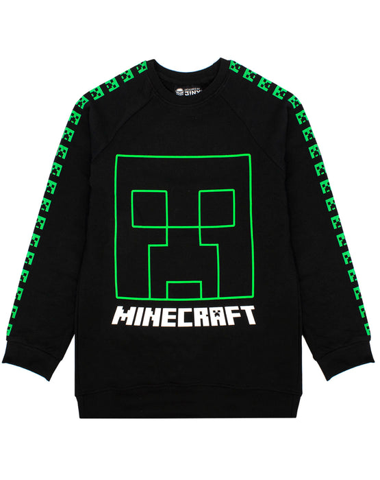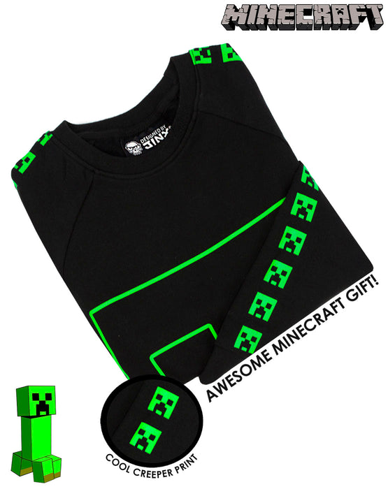 A must have for Minecraft fans, this awesome sweater features a unique Creeper design, making it the perfect addition to any gamer's wardrobe! This Minecraft Creeper Face sweatshirt features a fun high build green print on the front showcasing the instantly recognisable Creeper face. This, combined with the white Minecraft logo printed underneath, contrasts against the black of the sweater, making this a stand out item of clothing for any Mining fan! The sweater offers a crew neck and long sleeves, which feature printed green creeper taping down the side, from the shoulder to the cuff. Made from 100% cotton, this sweater offers a comfortable feel and fit for your little gamers. This item is 100% genuine licensed Minecraft merchandise & features official branding throughout. We want you to get the most out of your new sweatshirt, so please be sure to follow all care label instructions and contact our dedicated customer service team for any additional information or sizing queries