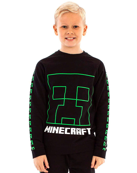 Minecraft Creeper Face Boy's Sweatshirt - Black