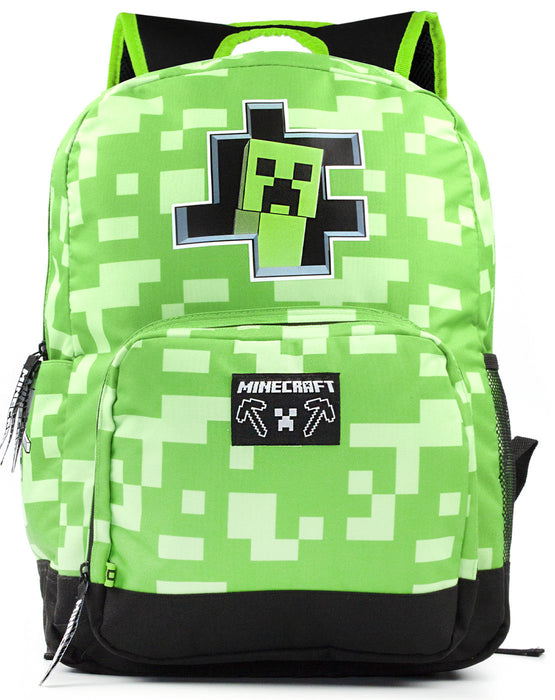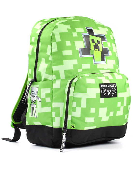 - Minecraft Kids Backpack - Our green Minecraft bag is perfect for any child that plays the epic video game. This premium quality backpack has an all over pixelated design as seen in the Minecraft games with the fan favourite villain; Green Creeper breaking through the brick wall on the front