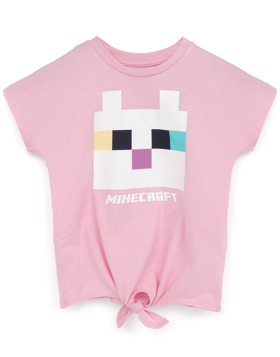 Minecraft Kitty Front Tie Girl's Pink T-Shirt Gamer Tee