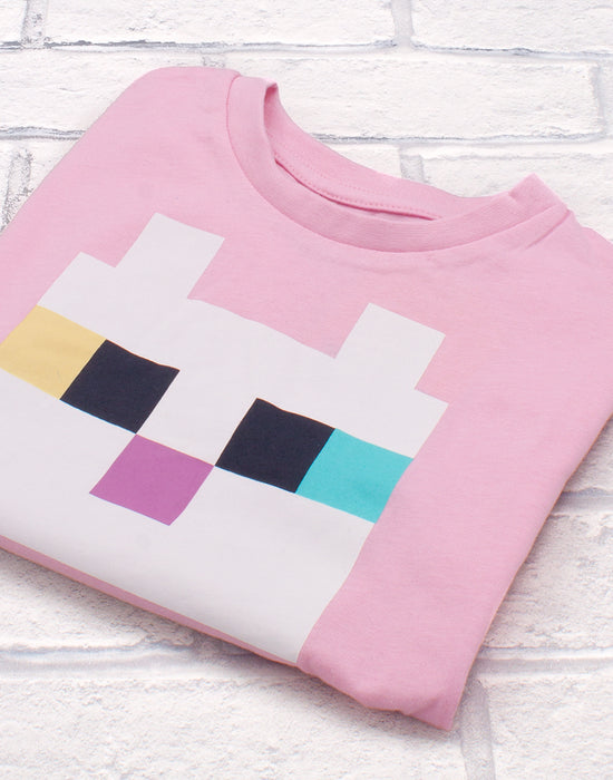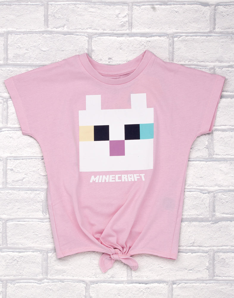 Shop for the perfect addition to your little gamer's wardrobe with this awesome Minecraft girls t-shirt. Featuring the Kitty Cat from the epic video game, this top is a must have for your minecrafters. With official branding throughout this product comes in a pale pink colour, with a crew neck and short sleeve combination and has a front tie knot. Made from 100% cotton this tee is both comfortable and stylish and can be worn any season of the year. Please follow care label instructions carefully to get the most out of this product.