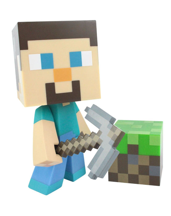 Bring Minecraft to life with this super fun Steve vinyl figure! Officially licensed, this vinyl figure is inspired by the main playable character from the hugely popular Minecraft video game series. This cool Steve figure sees his pixelated head with a blue tee and jeans and detachable axe in hand, along with an additional dirt block accessory. The figure measures approximately 14cm from head to toe and comes with posable arms and ball-jointed rotatable head. This item is 100% genuine licensed Minecraft merchandise & features official branding throughout. We want you to get the most out of your new vinyl figure, so please be sure to follow all care label instructions and contact our dedicated customer service team for any additional information.