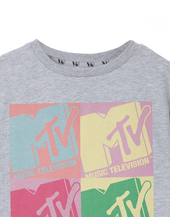 MTV Colour Block Girls Grey Marl Short Sleeved T-Shirt