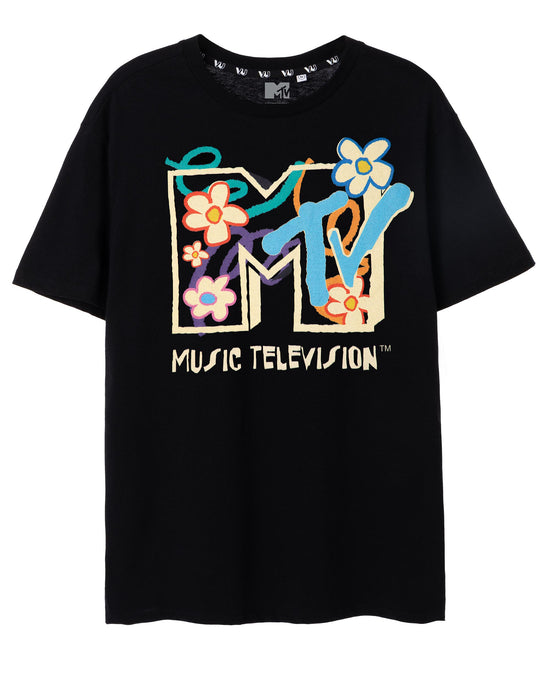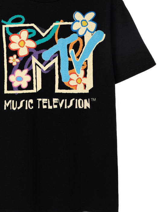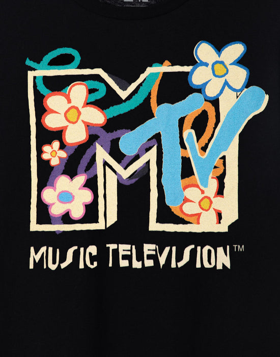 MTV Flowers Black Short Sleeved T-Shirt