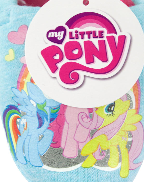 Add My Little Pony style to your life with these awesome officially licensed My Little Pony girl’s slippers, perfect for keeping little feet warm! Coming in a soft blue, these slippers offer a cute design across the front panel of the slipper, featuring Rainbow Dash, Pinkie Pie and Fluttershy surrounded by a colourful rainbow and love-hearts. These slippers offer a stretchy elasticated opening to keep them securely on foot for a comfortable feel. These awesome slippers make the perfect gift for little fans of My Little Pony! This item is 100% genuine licensed My Little Pony merchandise & features official branding throughout. We want you to get the most out of your new slippers, so please be sure to follow all care label instructions and contact our dedicated customer service team for any additional information or sizing queries.