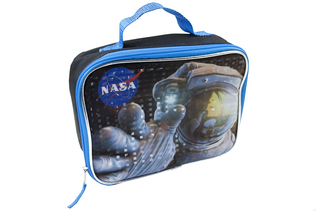 A must have for little astronauts in the making this awesome officially licensed NASA backpack and lunch set has everything they need for back to school! This 5 piece set comes with a science-savvy backpack complete with NASA emblem and universe planet design across the front, made up of two zip compartments and adjustable straps. Along with this bag is a matching zip compartment lunch box in the classic school style featuring a fun astronaut design, to complete the kit the set comes with BPA free water bottle, ice pack and squishy stress ball zip pull with the NASA logo. A must have for kid's back to school season this backpack and lunch set ticks all the boxes and will set them apart from the crowd with a cool NASA space theme. Please follow care label instructions carefully.