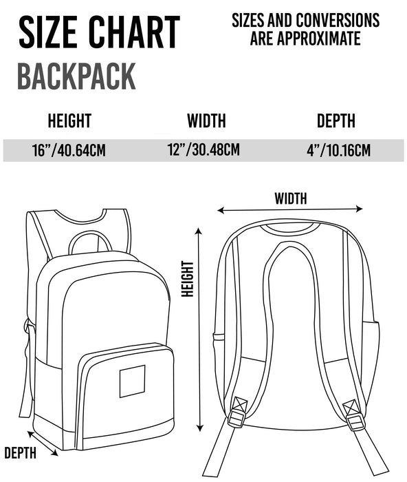 - Backpack measures: 16"x14"x4" / Lunchbox measures: 9.5"x7.5"x2.5"
