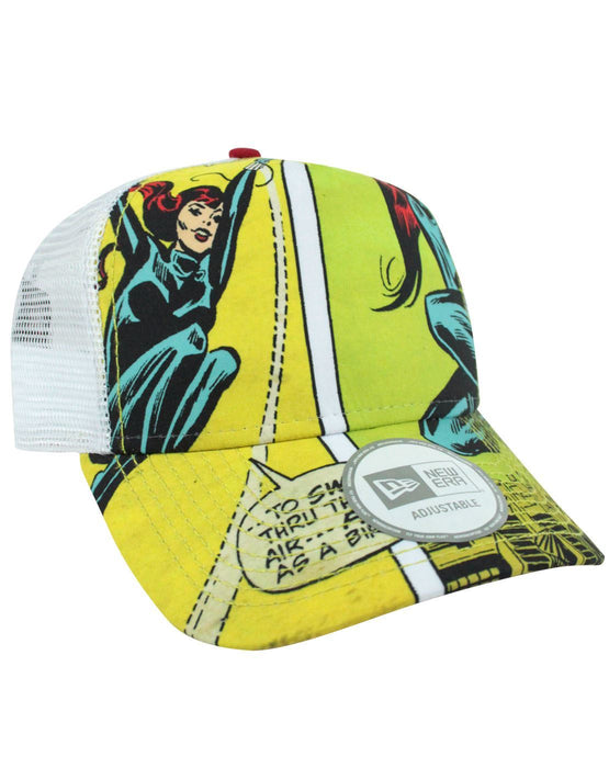 The official New Era Avengers Black Widow Trucker cap is an absolute must-have for any fans of the Avengers character Black Widow. This official trucker style cap has a two part look with a solid printed cap at the front and white mesh detail on the back. The design across the cap features Marvel character Black Widow in a cool colourful comic book style complete with retro look speech bubble detail. The official New Era logo can also be seen across the side in red along with the official sticker across the flat peak. Made with a premium fit and finish this cap also benefits from an interior branded taping as well as a moisture wicking black sweatband. This Avengers Black Widow Trucker cap is fitted and has an open adjustable back; please refer to the New Era size guide for all information about sizing.