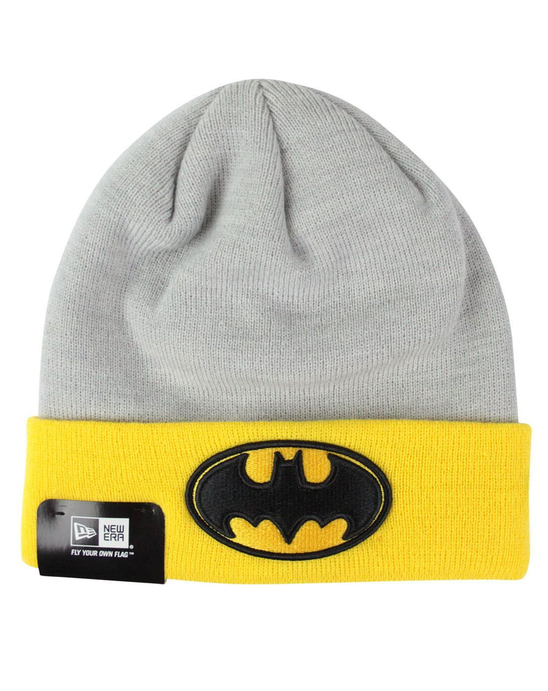 One of the leading manufactures in headwear New Era are known as an iconic brand offering premium products, this New Era Batman Heather Crown Knit hat ticks all the right boxes for DC Comics fans! This knit hat comes in grey and yellow and features the iconic Batman logo embroidered across the front of the turn up brim. The New Era logo can also be seen in black on the side of the hat tying the look together perfectly, this hat offers a stylish classic knit making it a high quality piece. This knit is made from 100% acrylic and offers a onesize fits all style with official labelling through out.
