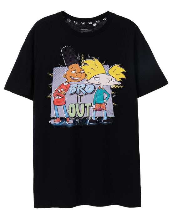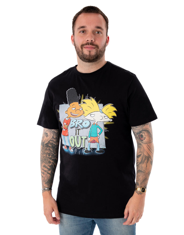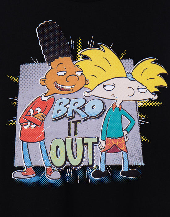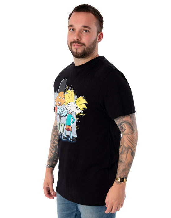 Relive childhood classics with our Nickelodeon Hey Arnold! 'Bro It Out' Men's Black Short-Sleeved T-Shirt!
