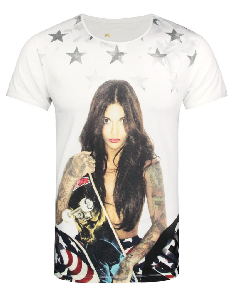 This official Original Geek Skater mens t-shirt is another awesome edition from the Original Geek range, known for their striking, graphic print designs this mens t-shirt does not disappoint. This Original Geek t-shirt has a photographic style model style print showcasing a tattooed woman clutching a skateboard and wearing USA flag inspired leggings. This fashion forward t-shirt also has faded star effect along the top, this print is set against the crisp white of the t-shirt making it a stand out piece. This Original Geek t-shirt comes in 100% cotton and offers a soft to touch feel, details include thin neck and sleeves edges. This mens Skater t-shirt offers a standard fit, we want you to get the most possible out of this t-shirt please follow care label instructions carefully.