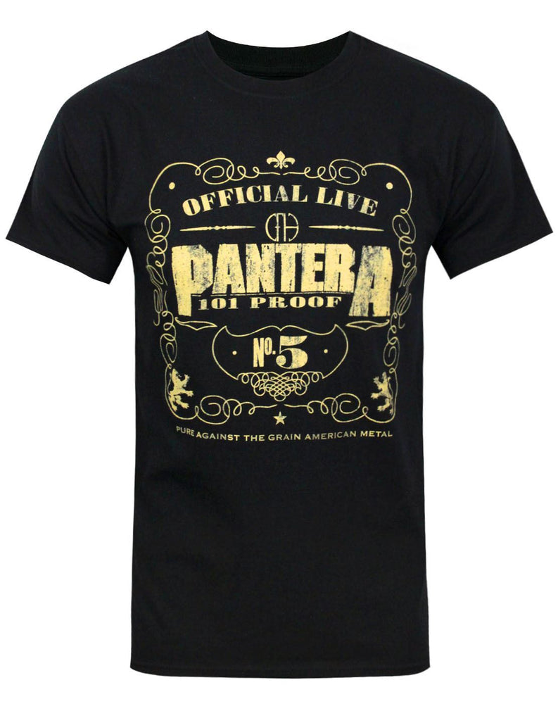This official Pantera 101 mens t-shirt is a cool addition to any fans wardrobe, officially licensed merchandise this awesome t-shirt is the only way to update your band merchandise in style. This mens black t-shirt features a large print inspired by the bands live album Official Live: 101 Proof released in 1997. The quality print showcases the album cover design, which takes its look from a whiskey bottle label, not dissimilar to the classic Jack Daniels brand. Finished with a cool overall distress effect this t-shirt has a classic vintage rock t-shirt look and feel. Offering a regular fit this mens Pantera 101 t-shirt comes in a classic black and is made with 100% cotton.