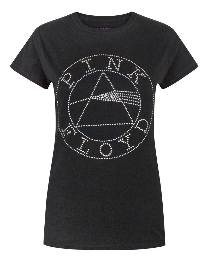 A perfect twist on the classic band t-shirt this Pink Floyd Dark Side Of The Moon diamante womens t-shirt is packed with detail perfect for adding something different to your wardrobe. The print across the front of the t-shirt sees the iconic Dark Side Of The Moon prism print finished with a stand out diamante look that stands out against the classic black of the t-shirt. This t-shirt offers a crew neck and short sleeves with a regular ladies fit, this t-shirt is made from 100% cotton for a comfy fit, please follow all care label instructions carefully. It is recommended to machine wash cold. Please ask for additional sizing information if needed.