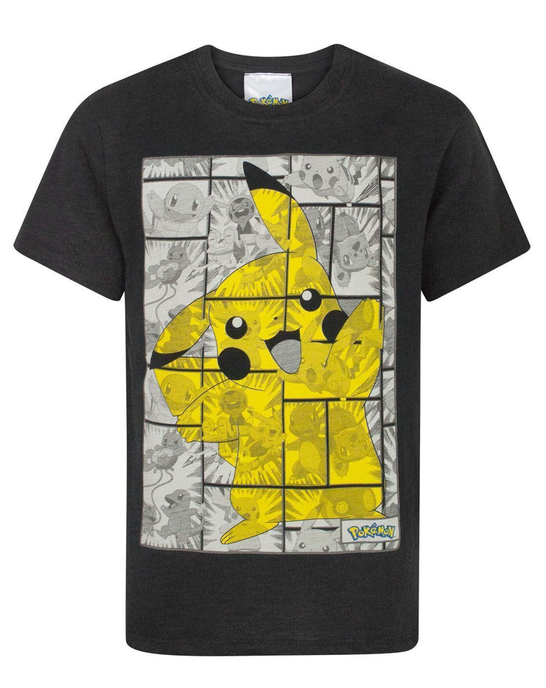 Pokemon Pikachu Grey Panels Boy's T-Shirt