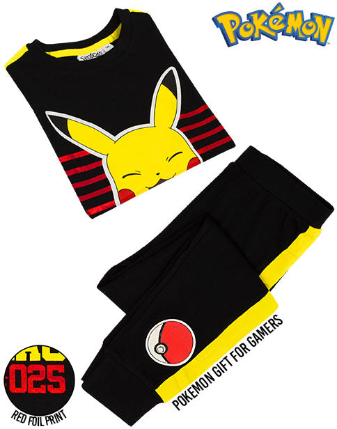 - POKEMON PYJAMAS FOR BOYS & GIRLS - Our Pokémon pyjamas for kids is perfect for them little boys and girls, who love the Pokémon tv series, movies, toys or games. The children’s striking black & yellow pyjamas are a great idea as a birthday present or for any special occasion and are suitable for children from sizes 5-6 to 11-12 years.