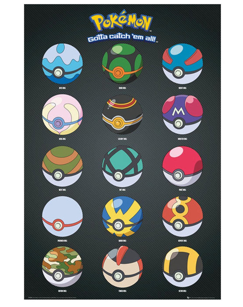 Perfect for all Pokémon Fans! Catch all your favourite Pokémon and see all your favourite Pokeballs with this ‘Pokémon Pokeballs Maxi Poster. Featuring 15 Pokeballs from the Pokémon movies, games and TV series. All you need on you wall to make sure you Catch them all. This poster is top quality, high resolution artwork, so hang this poster on your wall with pride. Poster measures approximately 61 x 91.5cm.