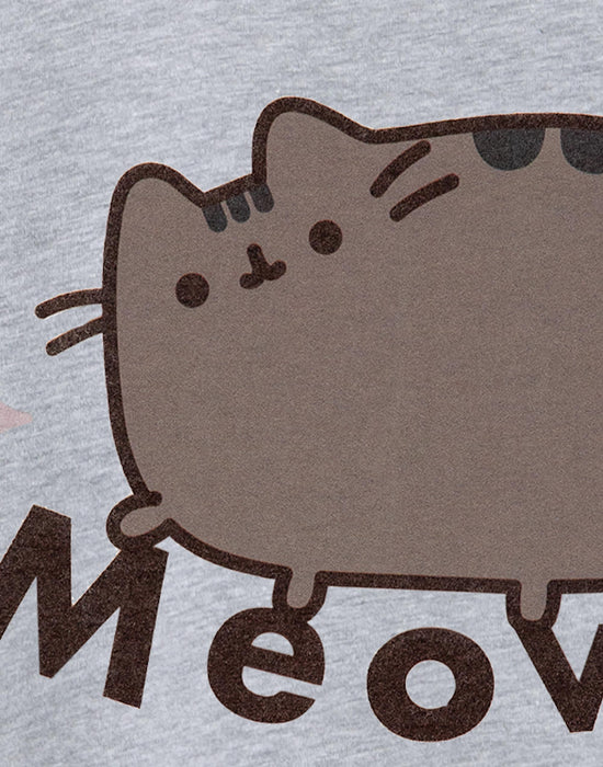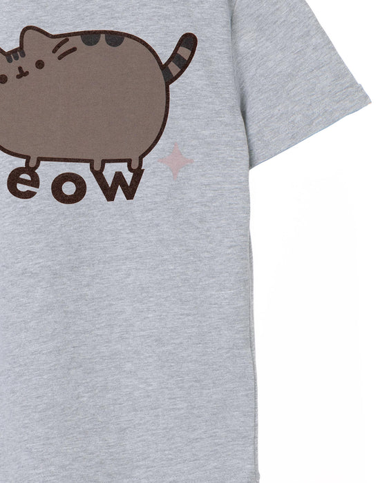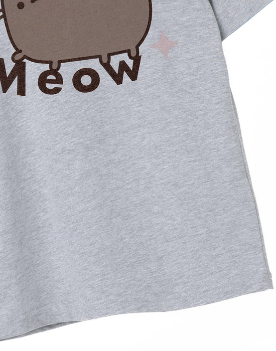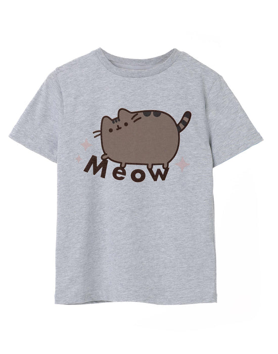 Pusheen Meow Girls Grey Marl Short Sleeved T-Shirt