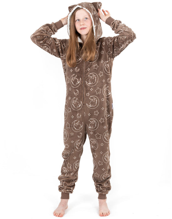 Pusheen The Cat Onesie For Girls - Brown All Over Print