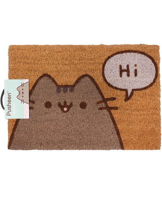 A perfect gift idea that is not only ideal for Pusheen the cat fans but could also be brilliant, as a cute and creative house warming gift for anyone! This design features a neutral palette, with Pusheen the cat saying 'Hi' in a speech bubble. What a warm welcome for any guests! This doormat has an anti slip bottom and is extremely durable, it could be positioned both indoor and outdoor. Please follow any care instructions carefully.