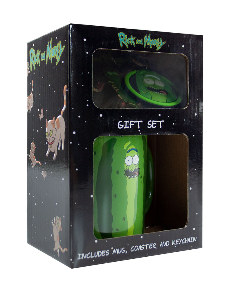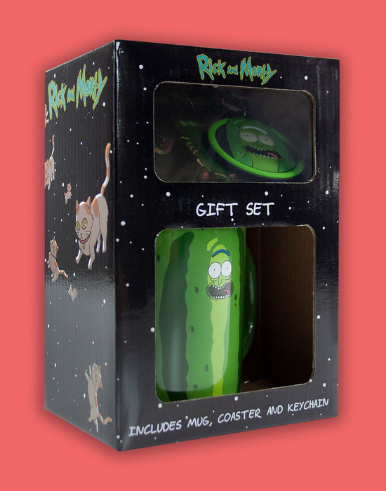 Perfect for fans of the Rick and Morty series! This set comes with a mug, coaster and keychain included all in a Rick and Morty packaging. The officially licensed design takes its inspiration from the Pickle Rick episode. This is a perfect gift for any enthusiast of the awesome series!