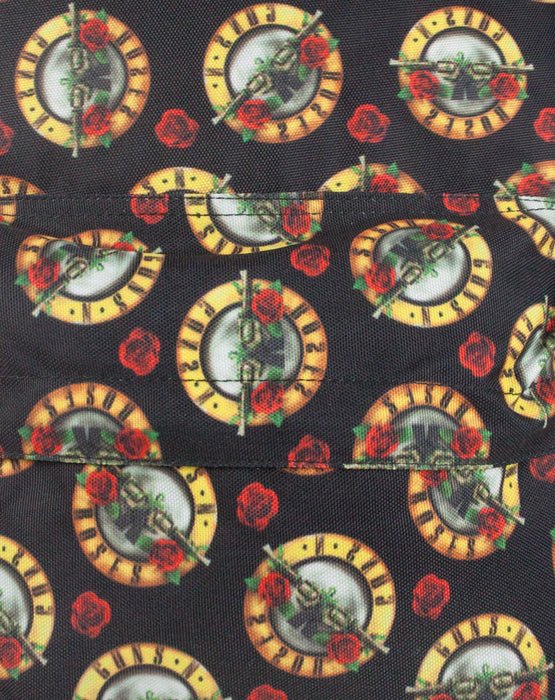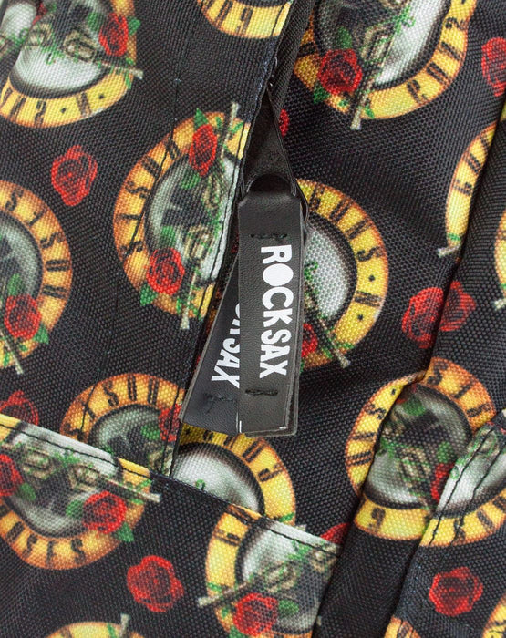 Perfect for carrying around your stuff in style, this Rock Sax Guns N Roses backpack is loaded with cool details perfect for any fan of the classic band! This backpack sees an awesome front and back all-over printed style, showcasing the bands classic gun logo in a repeated pattern in vibrant detail and rich colour. This Rock Sax backpack features a large zip-up main compartment with an interior padded laptop pocket and headphone port, along with a zip up front pocket to store any extra belongings. The bag comes with fully padded adjustable back straps, as well as a durable carry handle on top. Featuring official Rock Sax branding throughout, this backpack is made from a durable material and is the perfect school or work bag.